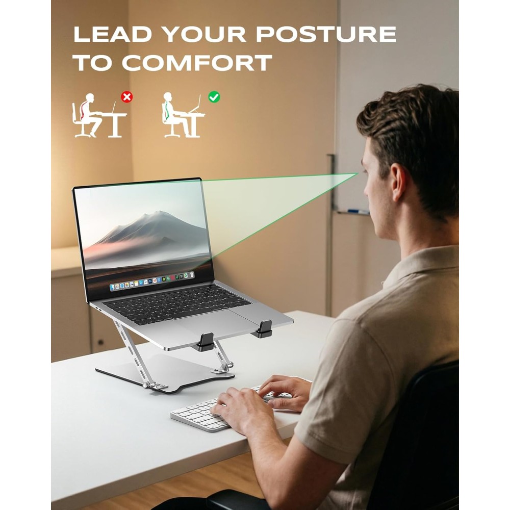 - 【Tailored Ergonomic Comfort】Customize your perfect viewing angle. Easily adjust the height from 0.79" to 4.72" and tilt up to 55° to achieve an ergonomic screen position that aligns with your eye level. This laptop stand for desk helps promote a healthier posture, reducing strain on your neck, shoulders, and back during long work sessions.